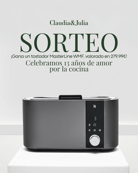 Sorteamos la 𝗧𝗼𝘀𝘁𝗮𝗱𝗼𝗿𝗮 𝗠𝗮𝘀𝘁𝗲𝗿𝗹𝗶𝗻𝗲 𝗪𝗠𝗙, 𝘃𝗮𝗹𝗼𝗿𝗮𝗱𝗮 𝗲𝗻 𝟮𝟳𝟵,𝟵𝟵€. Una tostadora premium automática, que lo tiene todo para conquistarte😉 .
