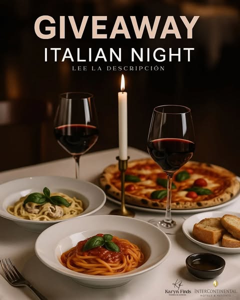 GÁNATE UNA ITALIAN NIGHT EN EL HOTEL INTERCONTINENTAL PARA 2 PERSONAS 🇮🇹🍝