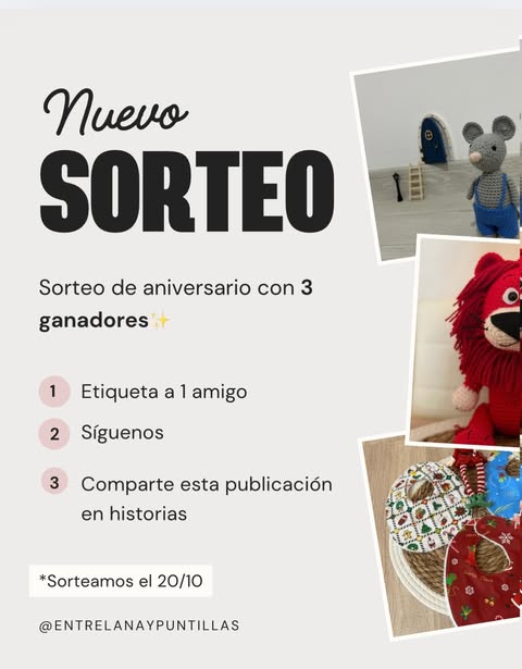 El sorteo se cerrará el día 19 de octubre y el día 20 anunciaremos los ganadores por historias.