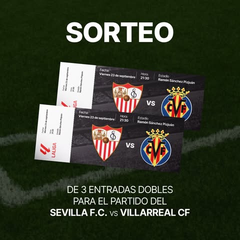 Gana 1 de las 3 entradas dobles para asistir al partido Sevilla FC vs Villareal CF este martes 23 de septiembre a las 21:30h en el Sánchez-Pizjuán.