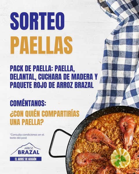 En Arroz Brazal queremos celebrarlo contigo regalando un Pack de paella increíble que incluye:1 paella,1 delantal,1 cuchara de madera y 1 paquete rojo de nuestro arroz Brazal ❤️