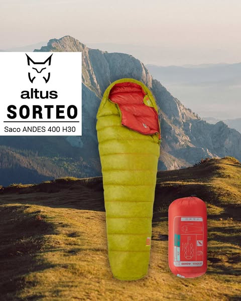 ⛰️ El saco de dormir ALTUS ANDES 400 H30 (PVP original 149.99€) cuenta con relleno de pluma (duvet 90/10) de 700 cuins y 180 g de peso, lo que lo convierte en una opción ultraligera ideal para tus aventuras. Temperaturas: Confort 🤗: +10ºC ; Límite 😐: +5ºC ; Extrema 🫥: -8ºC .