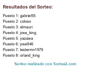Lista de participantes: jose_king, elmauri, lestermn1979, gabriel55, orland_king, yazawa, coloso, jose946.