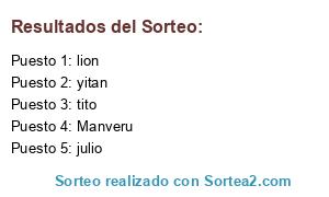 Lista de participantes: Manveru, yitan, julio, lion, tito.