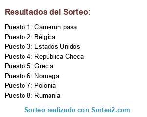 Lista de participantes: Grecia , Bélgica , Noruega , Rumania , Estados Unidos , Camerun pasa , Polonia , República Checa.
