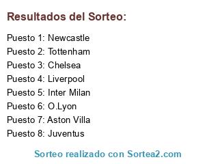 Lista de participantes: O.Lyon, Tottenham, Newcastle, Juventus, Liverpool, Inter Milan, Chelsea, Aston Villa.