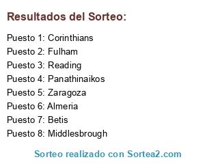 Lista de participantes: Zaragoza, Betis, Almeria, Fulham, Corinthians, Middlesbrough, Reading, Panathinaikos.