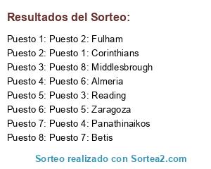 Lista de participantes: Puesto 1: Corinthians , Puesto 2: Fulham , Puesto 3: Reading , Puesto 4: Panathinaikos , Puesto 5: Zaragoza , Puesto 6: Almeria , Puesto 7: Betis , Puesto 8: Middlesbrough.