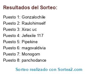 Lista de participantes: Monogorn , Xirac uc , Pipekine , Jefexile 117 , Gonzalochile, Raulohimself , magovaldivia, panchodance.