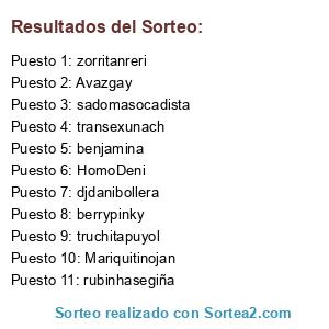 Lista de participantes: Avazgay, HomoDeni, Mariquitinojan, rubinhasegiña, transexunach, djdanibollera, sadomasocadista, berrypinky, truchitapuyol, zorritanreri, benjamina.