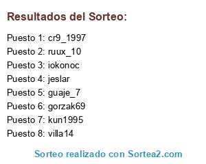 Lista de participantes: kun1995, cr9_1997, gorzak69, iokonoc, ruux_10, guaje_7, jeslar, villa14.