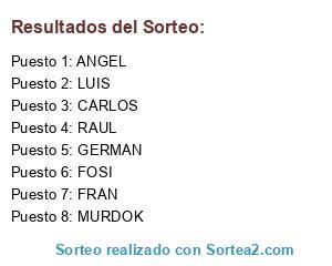 Lista de participantes: FOSI, MURDOK, ANGEL, GERMAN, LUIS, CARLOS, RAUL, FRAN.