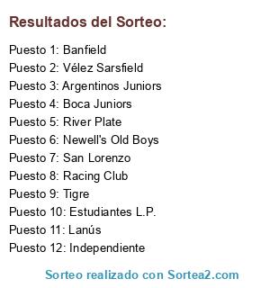 Lista de participantes: Boca Juniors, River Plate, Independiente, San Lorenzo, Estudiantes L.P., Lanús, Racing Club, Newell's Old Boys, Vélez Sarsfield, Tigre, Argentinos Juniors, Banfield.
