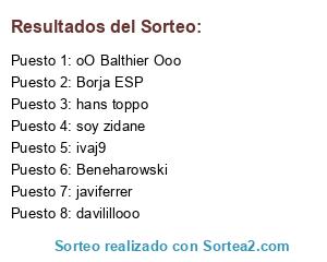 Lista de participantes: ivaj9 , Borja ESP , hans toppo , oO Balthier Ooo , javiferrer , soy zidane , davilillooo, Beneharowski.