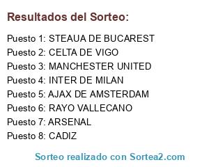 Lista de participantes: STEAUA DE BUCAREST, MANCHESTER UNITED, RAYO VALLECANO, CADIZ, CELTA DE VIGO, AJAX DE AMSTERDAM, INTER DE MILAN, ARSENAL.
