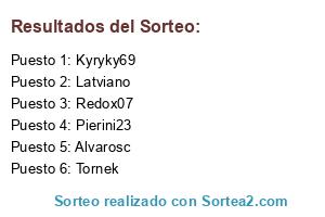 Lista de participantes: Tornek , Redox07 , Pierini23 , Alvarosc , Kyryky69 , Latviano.