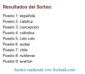 Lista de participantes: audax, cobreloa, nublense, concepcion, colo colo, everton, catolica, española, chile.
