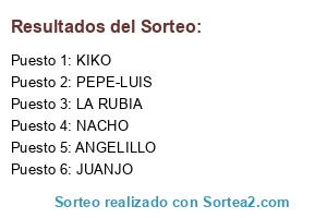 Lista de participantes: KIKO, ANGELILLO, NACHO, LA RUBIA, JUANJO, PEPE-LUIS.