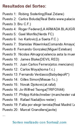 - Falta por elegir tenista(Real Madrid León!!) - Marcel Granollers(javite)