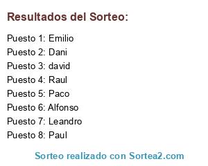 Lista de participantes: david, Paul, Dani, Paco, Raul, Leandro, Alfonso, Emilio.