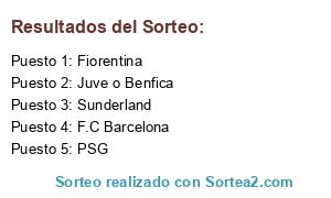 Lista de participantes: F.C Barcelona, Juve o Benfica, Fiorentina, PSG, Sunderland.
