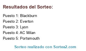 Lista de participantes: AC Milan, Lyon, Portsmouth, Blackburn, Everton.