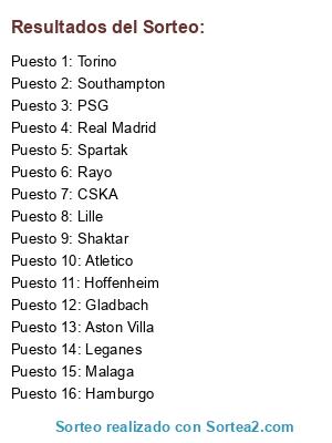 Resultados del sorteo:
