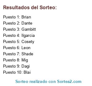 Lista de participantes: Blai, Brian, Cosety, Dagi, Dante, Gambitt, Ilgarcia, Leon, Mig, Shade.