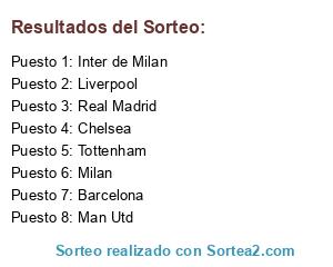 Lista de participantes: Barcelona, Real Madrid, Inter de Milan, Milan, Tottenham, Liverpool, Chelsea, Man Utd.