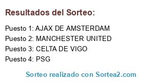 Lista de participantes: AJAX DE AMSTERDAM, CELTA DE VIGO, PSG, MANCHESTER UNITED.