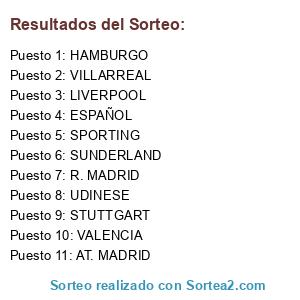 Lista de participantes: Valencia, Hamburgo, R. Mad, At. Mad, Stuttgart, Sunderland, Liverpool, Udinese, Villarreal, Newcastle, Sporting, Español.