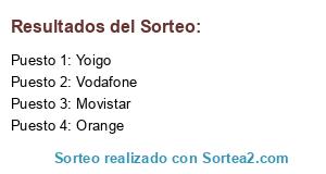 Lista de participantes: Yoigo, Vodafone, Movistar, Orange.