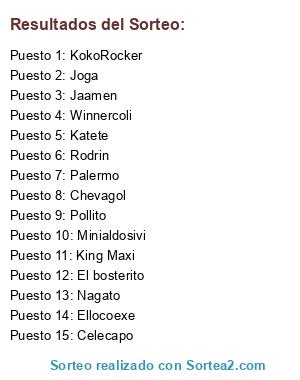 Resultados del sorteo: