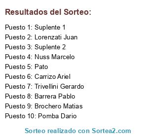 Lista de participantes: Pato, Barrera Pablo, Brochero Matias, Carrizo Ariel, Pomba Dario, Lorenzati Juan, Trivellini Gerardo, Nuss Marcelo, Suplente 1, Suplente 2.