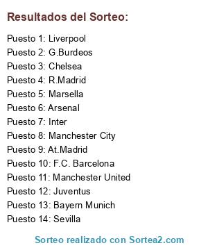 Resultados del sorteo:
