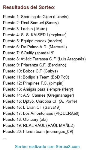 Resultados del sorteo: