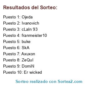 Lista de participantes: ZeQuI, DomiN, Ojeda, buke, SkA, Axuxon, Er wicked, Ivanovich, franmeister10 , cLaIn 93.