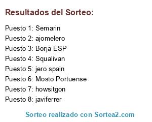 Lista de participantes: Borja ESP, javiferrer , Squalivan , jero spain , Semarin , howsitgon , Mosto Portuense , ajomelero.