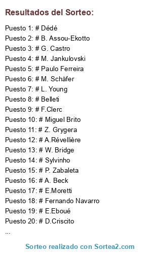 Lista de participantes: # Dédé, # J. Mathieu, # Sylvinho, # W. Bridge, # A.Cissokho, # M. Jansen, # B. Assou-Ekotto, # Fábio Aurélio, # E.Moretti, # D.Criscito, # A.Kolarov, # Fernando Navarro, # M. Jankulovski, # M. Schäfer, # M. Kadlec, # A.Révellière, # P. Zabaleta, # R.Fanni, # E.Eboué, # F.Clerc, # Z. Grygera, # L. Young, # Belleti, # G. Castro, # Paulo Ferreira, # D. Santon, # Cicinho, # A.Hinkel, # Miguel Brito, # A. Beck.