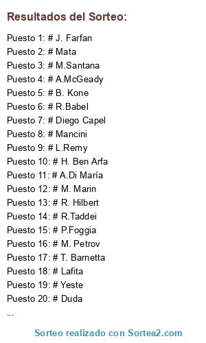 Lista de participantes: # A.McGeady, # Yeste, # Diego Capel, # Mancini, # Mata, # A. Sánchez, # R.Babel, # J.Albín, # Munitis, # Duda, # M. Marin, # T. Barnetta, # M. Petrov, # A.Di María, # H. Ben Arfa, # J. Farfan, # Pablo Hernandez, # P.Foggia, # R.Taddei, # Luis Garcia, # Jeffren, # Lafita, # S.Pepe, # Deivid, # M.Santana, # B. Kone, # R. Hilbert, # M. Gonzalez, # Kazim Kazim, # L.Remy.