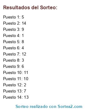 Lista de participantes: 1, 2, 3, 4, 5, 6, 7, 8, 9, 10, 11, 12, 13, 14.