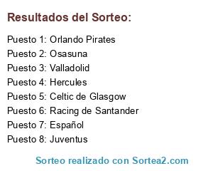Lista de participantes: Hercules, Valladolid, Juventus, Celtic de Glasgow, Orlando Pirates, Racing de Santander, Español, Osasuna.