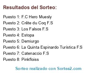 Lista de participantes: Pinkfloiss, Estopa, Demiurgo, Catenaccio F.S, La Quinta Espinardo Turística F.S, F.C Hero Muesly, Crête du Coq F.S, Los Falsos F.S.