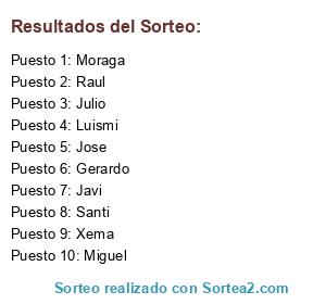 Lista de participantes: Gerardo , Miguel, Luismi, Julio, Jose, Javi, Santi, Xema, Moraga, Raul.