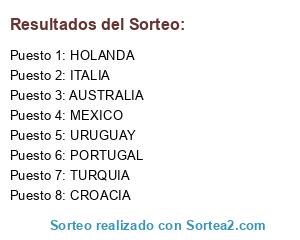 Lista de participantes: ITALIA, HOLANDA, PORTUGAL, TURQUIA, URUGUAY, CROACIA, AUSTRALIA, MEXICO.