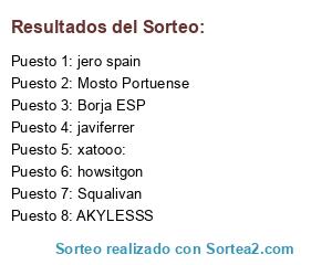 Lista de participantes: Borja ESP , javiferrer, Squalivan , jero spain , AKYLESSS , howsitgon , Mosto Portuense , xatooo:.