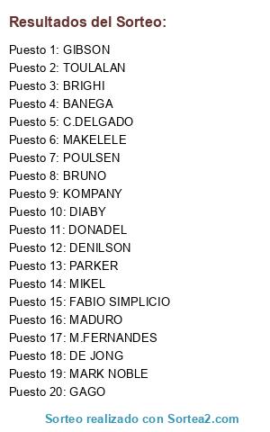 Lista de participantes: BRUNO, BRIGHI, DENILSON, DIABY, MIKEL, KOMPANY, DE JONG, GIBSON, BANEGA, MADURO, M.FERNANDES, GAGO, PARKER, MARK NOBLE, TOULALAN, C.DELGADO, MAKELELE, DONADEL, POULSEN, FABIO SIMPLICIO.