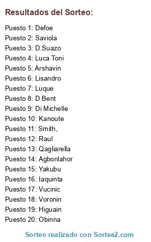 Lista de participantes: Vucinic, Defoe, Higuain, Kanoute, Saviola, D.Bent, Arshavin, Agbonlahor, Obinna, Di Michelle, Lisandro, Luque, Smith,, Voronin, Yakubu, Luca Toni, Raul, Qagliarella, Iaquinta, D.Suazo.