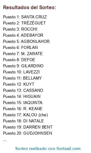 Lista de participantes: ADEBAYOR, ADRIANO (BRA), AGBONLAHOR, ANELKA, BELLAMY, BERBATOV, BORRIELLO, CAREW, CASSANO, CRESPO, DARREN BENT, DEFOE, DI NATALE, DJIBRIL CISSÉ, F. INZAGHI, FORLAN, GILARDINO, GUDJOHNSEN, HIGUAIN, IAQUINTA, KALOU (che), KANOUTE, KLOSE, KUYT, LARSSON, LAVEZZI, LUIS FABIANO, M. ZARATE, MICCOLI, OWEN, PANDEV, R. KEANE, RAÚL, ROCCHI, SAHA, SANTA CRUZ, SAVIOLA, SHEVCHENKO, TONI, TRÉZÉGUET, VUCINIC, YAKUBU, .