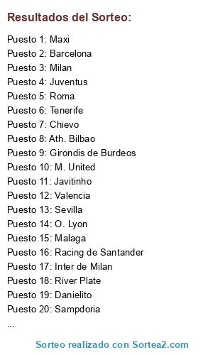 Lista de participantes: Sampdoria , River Plate , Inter de Milan , Girondis de Burdeos , Liverpool , Real Madrid , Xerez , Juventus , Racing de Santander , Atletico de Madrid , Tenerife , Barcelona , Sevilla , Valencia , Milan , Chievo , M. United , Roma , Ath. Bilbao, O. Lyon , Malaga, Javitinho, Danielito, Maxi.